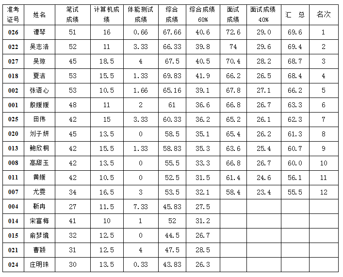 泰州消防救援支隊(duì)2021年公開招聘文員 人員筆試面試成績及總成績公告