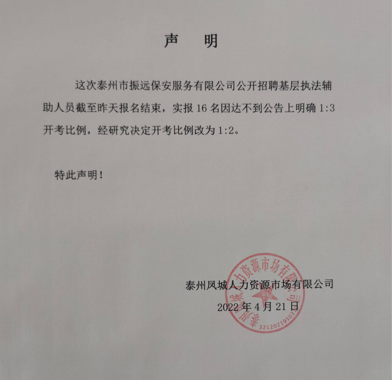 振遠保安有限公司公開招聘基層執(zhí)法輔助人員公告